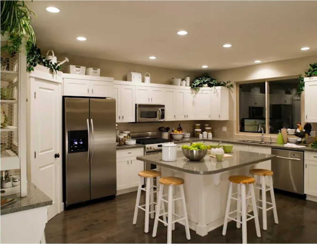 The ideal color temperature for kitchen recessed lights is between 2700K and 3500K—warm white to neutral white, both bright and inviting.