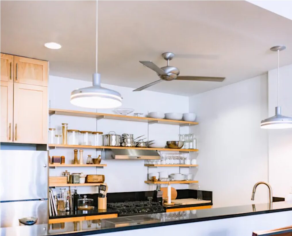 Recessed lighting fixtures (also known as downlights or ceiling lights) are marketed for their “clean and modern” look and are often installed extensively on kitchen ceilings.